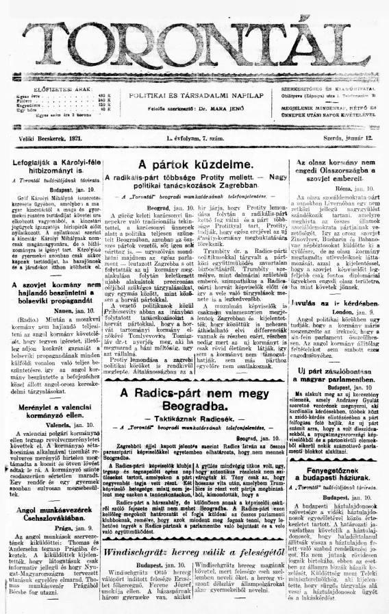 Torontál, 50. évf. 1921. január 12. 7. sz.