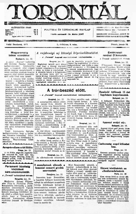 Torontál, 50. évf. 1921. január 14. 9. sz.
