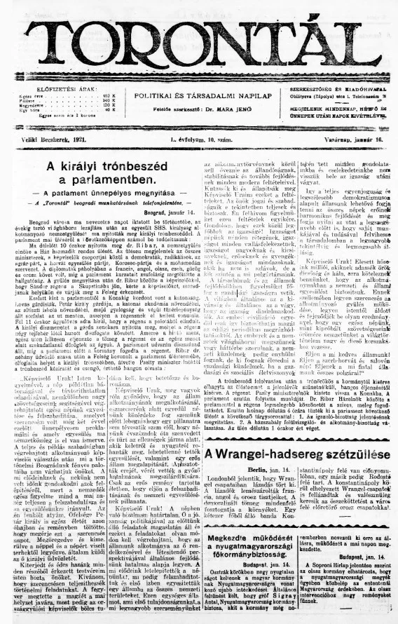 Torontál, 50. évf. 1921. január 16. 10. sz.