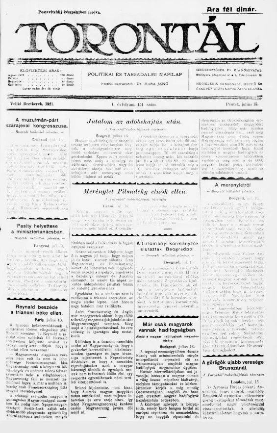 Torontál, 50. évf. 1921. július 15. 151. sz.