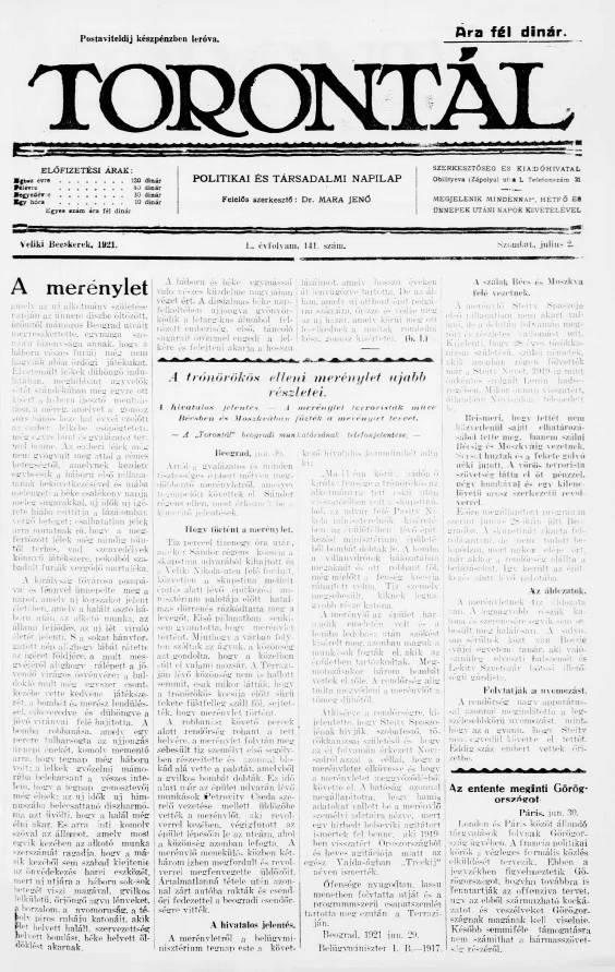 Torontál, 50. évf. 1921. július 2. 141. sz.
