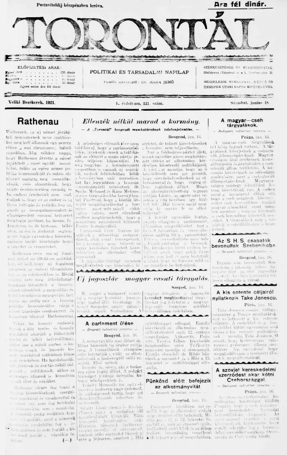 Torontál, 50. évf. 1921. június 18. 131. sz.