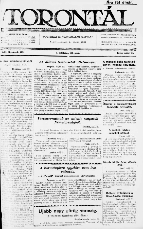 Torontál, 50. évf. 1921. május 24. 111. sz.