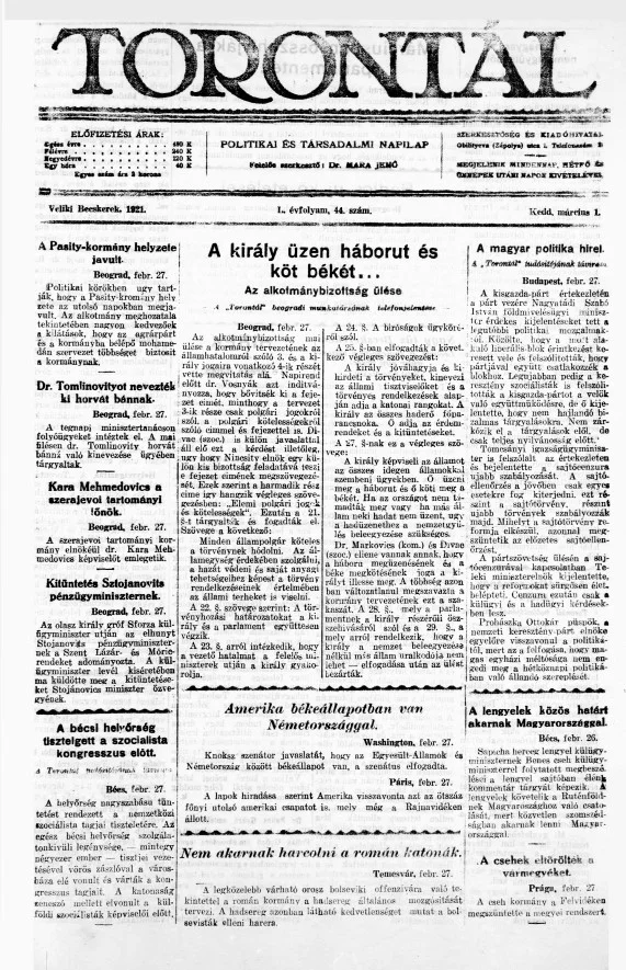 Torontál, 50. évf. 1921. március 1. 44. sz.
