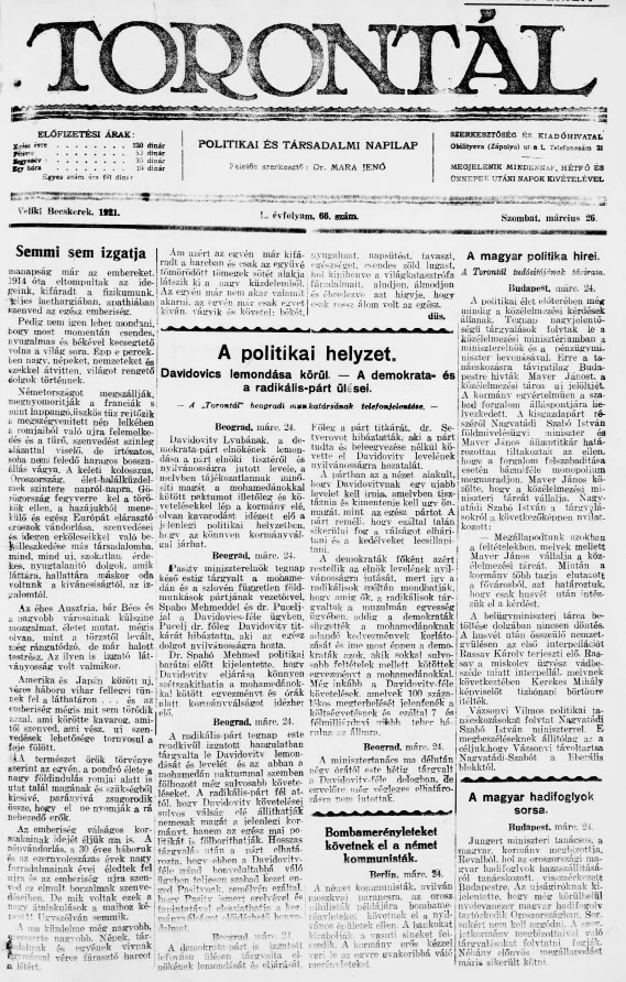 Torontál, 50. évf. 1921. március 26. 66. sz.