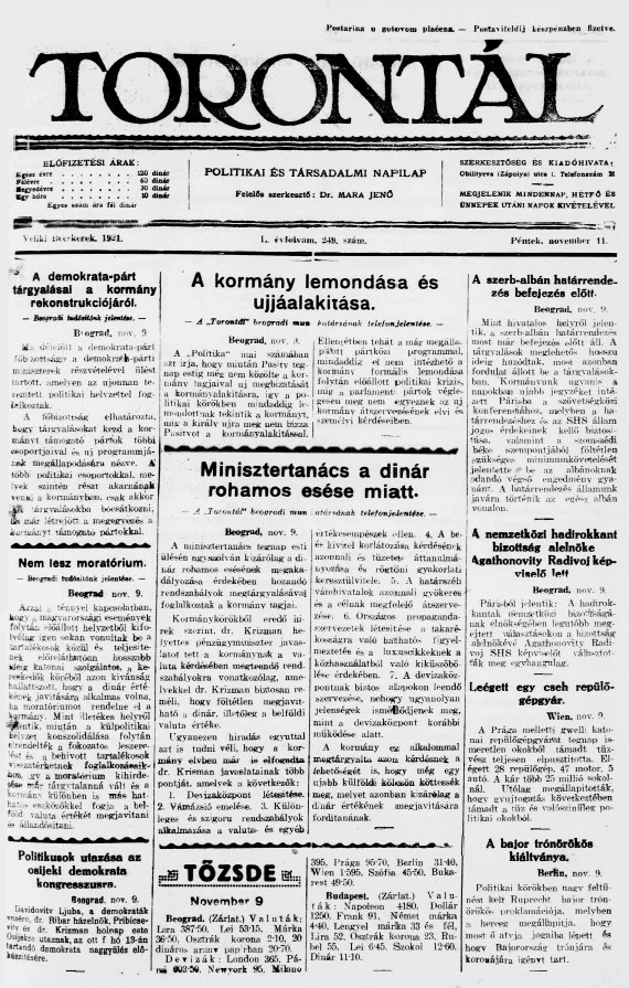 Torontál, 50. évf. 1921. november 11. 249. sz.