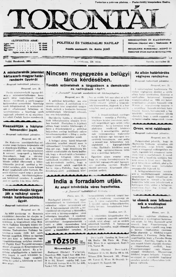 Torontál, 50. évf. 1921. november 23. 259. sz.