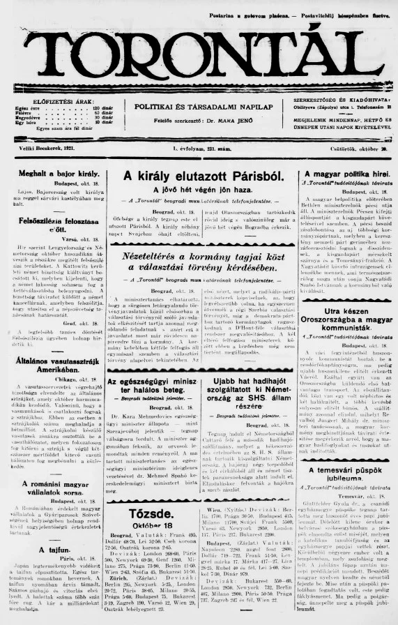 Torontál, 50. évf. 1921. október 20. 231. sz.