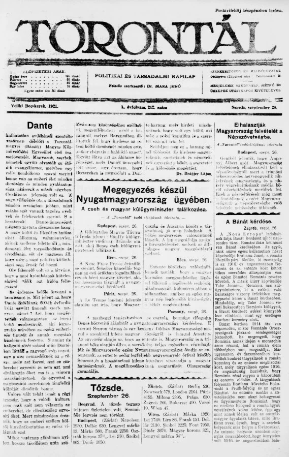 Torontál, 50. évf. 1921. szeptember 28. 212. sz.