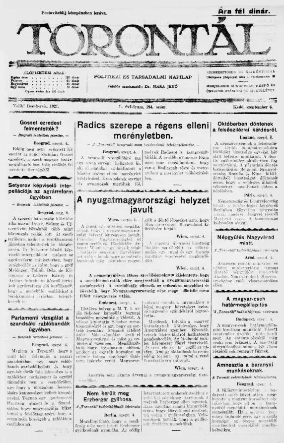 Torontál, 50. évf. 1921. szeptember 6. 194. sz.