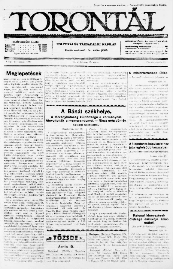 Torontál, 51. évf. 1922. április 21. 89. sz.