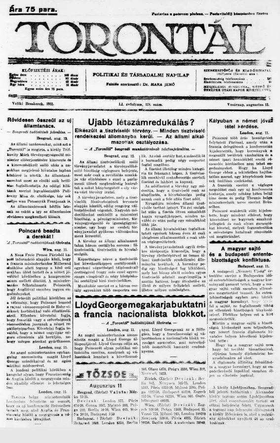 Torontál, 51. évf. 1922. augusztus 13. 178. sz.