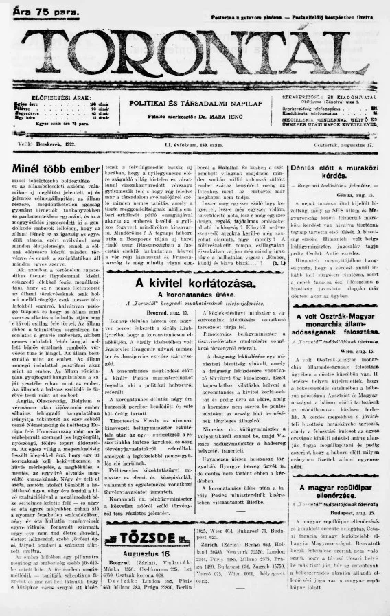 Torontál, 51. évf. 1922. augusztus 17. 180. sz.