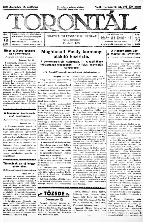 Torontál, 51. évf. 1922. december 14. 279. sz.