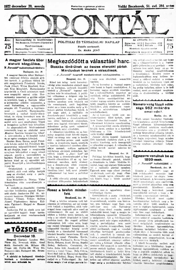 Torontál, 51. évf. 1922. december 20. 284. sz.