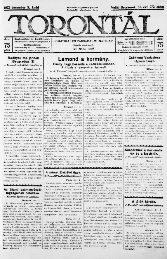 Torontál, 51. évf. 1922. december 5. 272. sz.