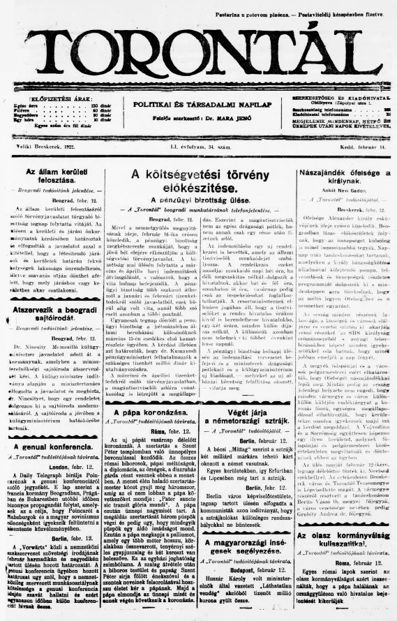 Torontál, 51. évf. 1922. február 14. 34. sz.