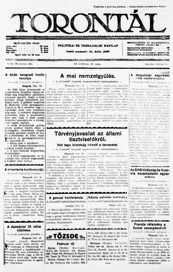 Torontál, 51. évf. 1922. február 18. 38. sz.