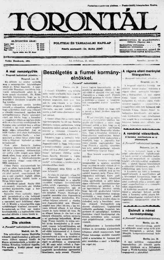 Torontál, 51. évf. 1922. január 28. 21. sz.