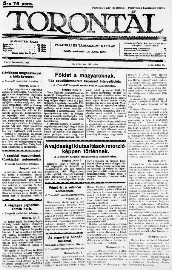 Torontál, 51. évf. 1922. július 11. 150. sz.
