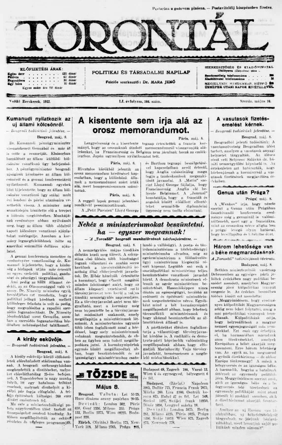 Torontál, 51. évf. 1922. május 10. 104. sz.