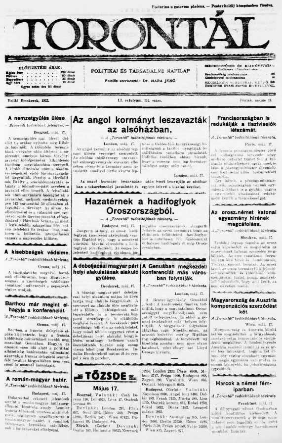 Torontál, 51. évf. 1922. május 19. 112. sz.