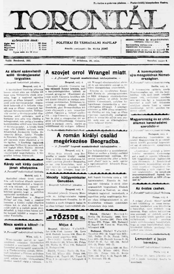 Torontál, 51. évf. 1922. május 6. 101. sz.