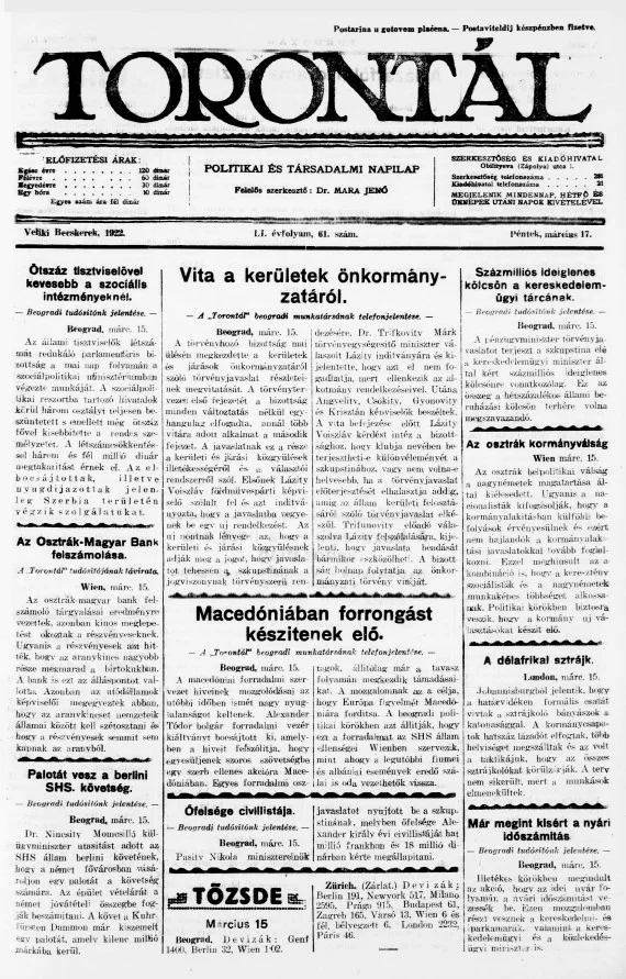 Torontál, 51. évf. 1922. március 17. 61. sz.