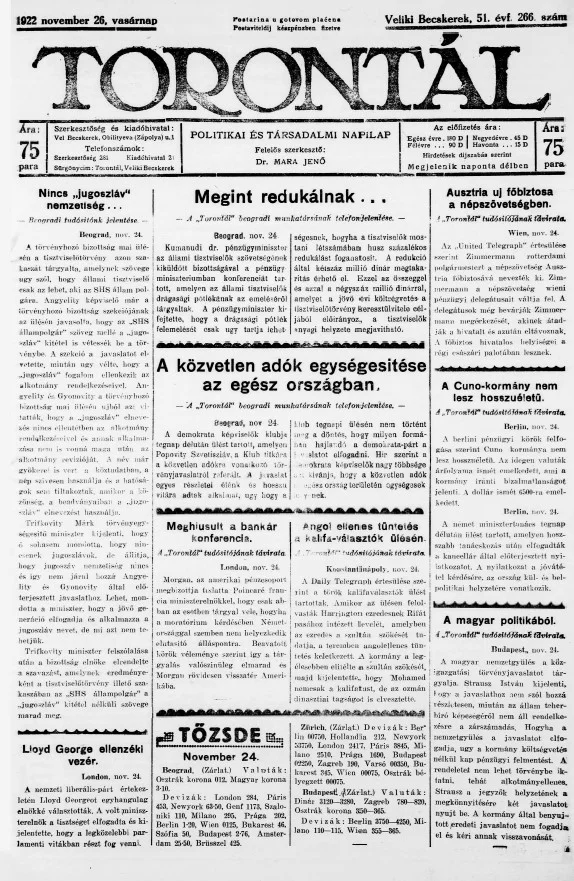 Torontál, 51. évf. 1922. november 26. 266. sz.