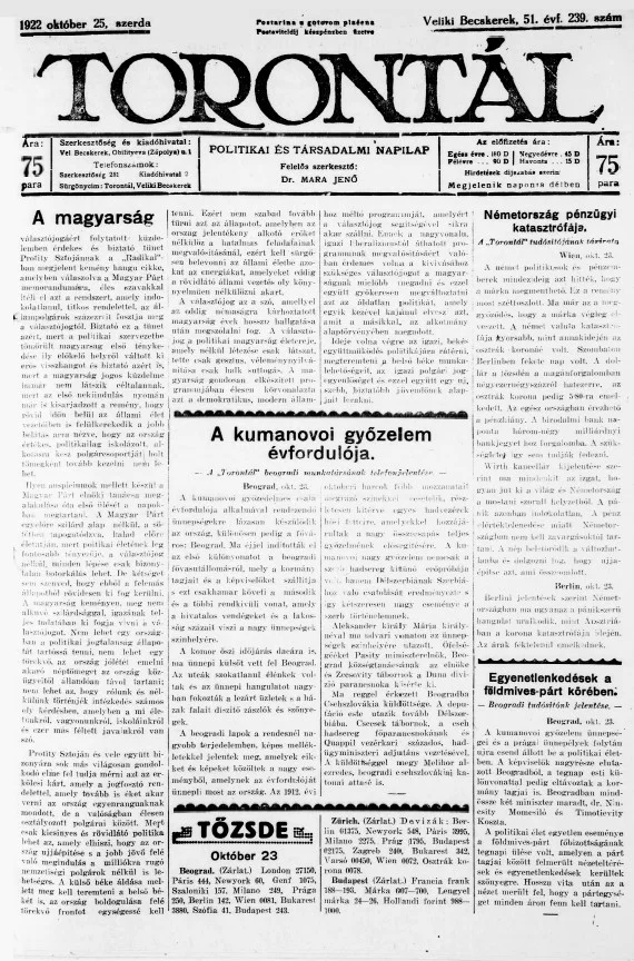 Torontál, 51. évf. 1922. október 25. 239. sz.