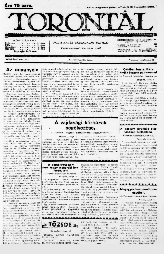 Torontál, 51. évf. 1922. szeptember 10. 201. sz.