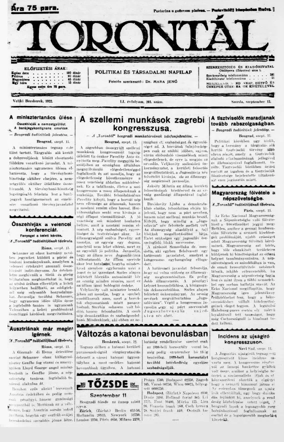 Torontál, 51. évf. 1922. szeptember 13. 203. sz.