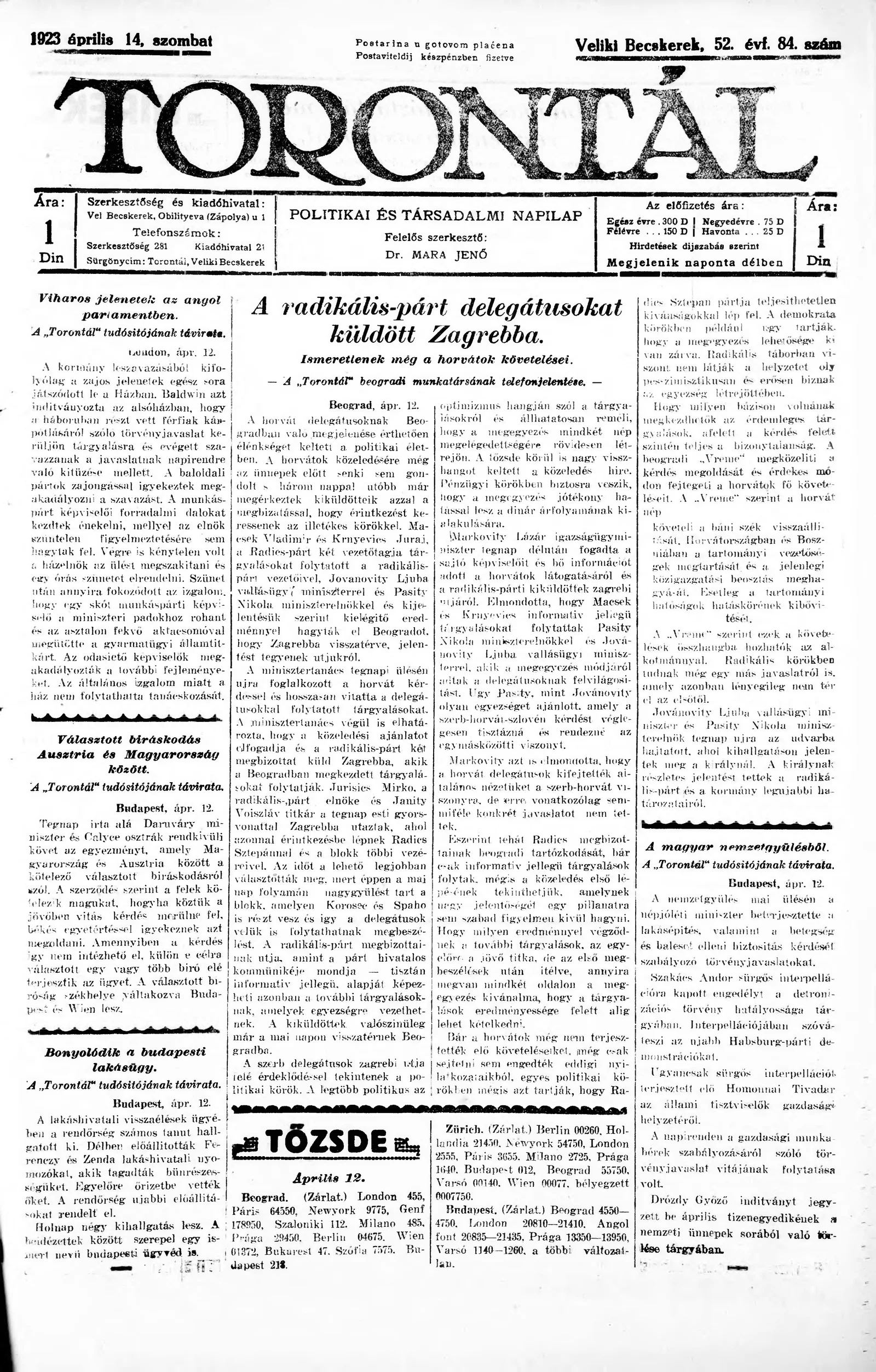 Torontál, 52. évf. 1923. április 14. 84. sz.