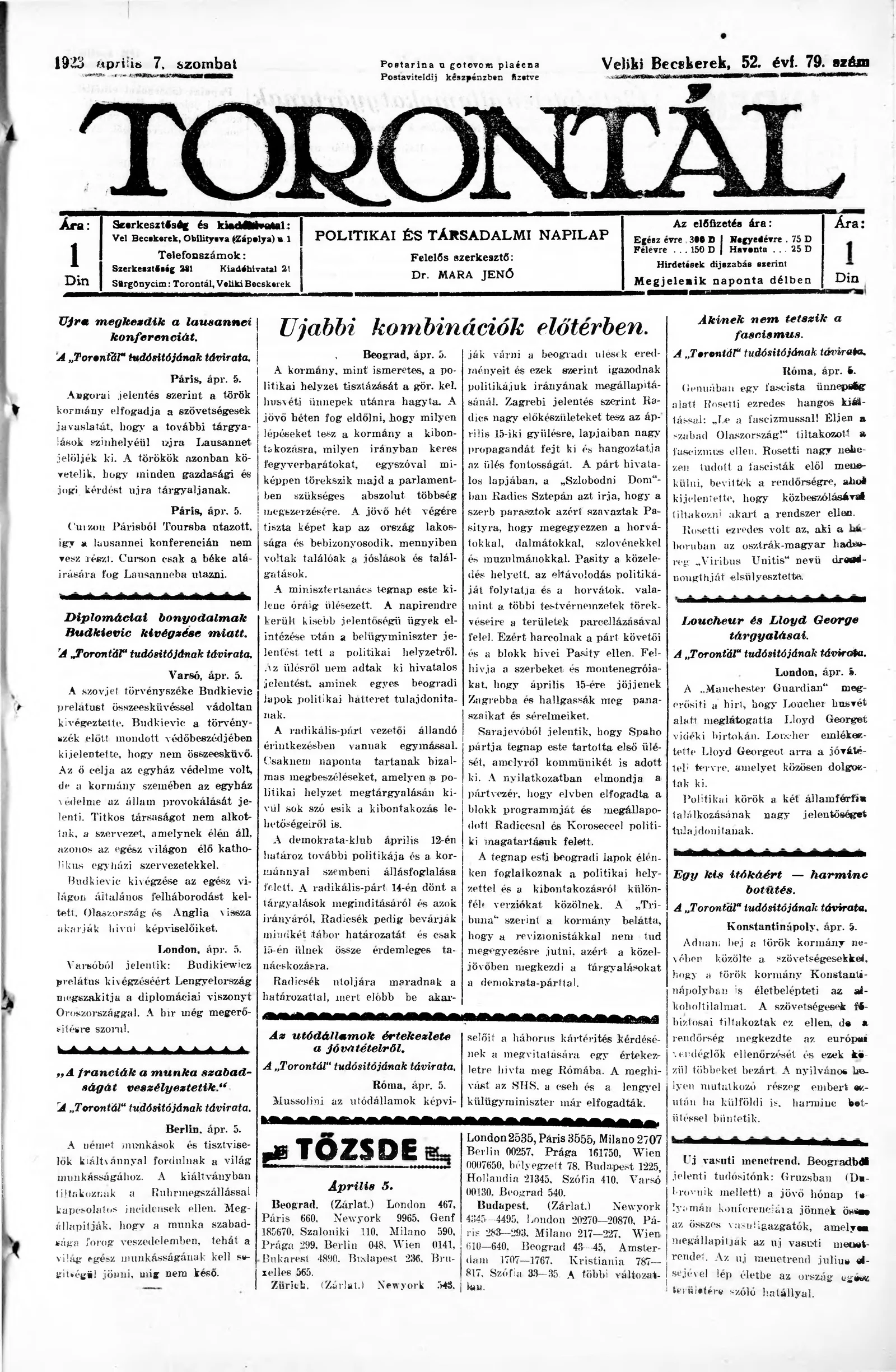 Torontál, 52. évf. 1923. április 7. 79. sz.
