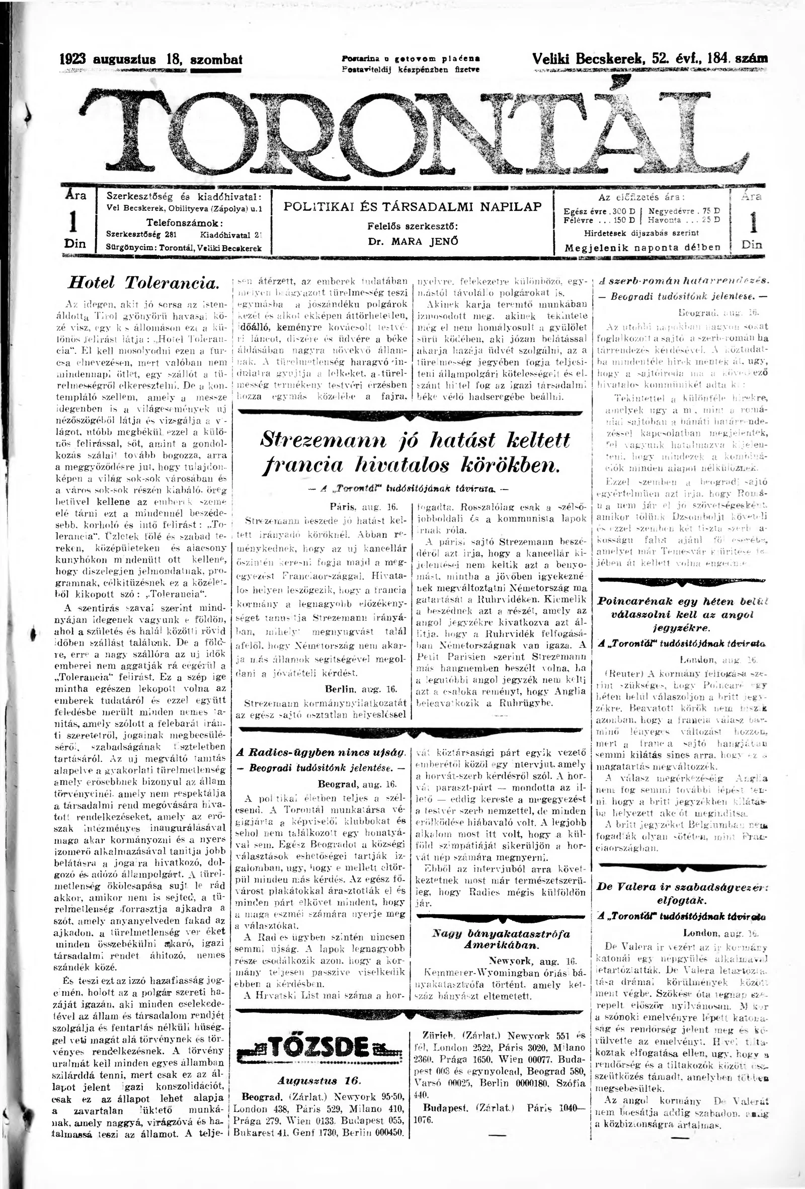 Torontál, 52. évf. 1923. augusztus 18. 184. sz.