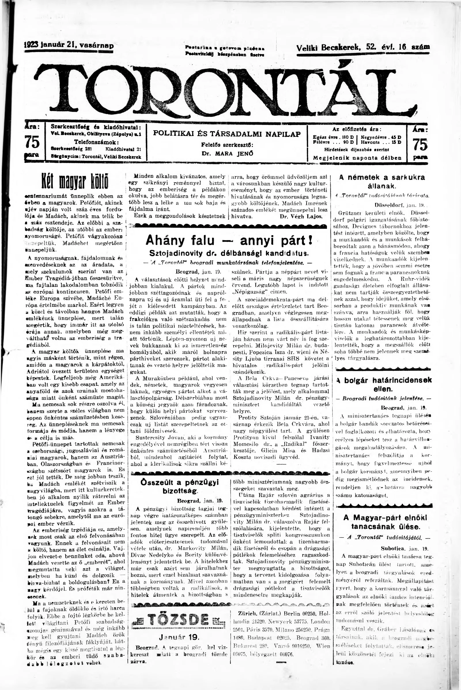 Torontál, 52. évf. 1923. január 21. 16. sz.