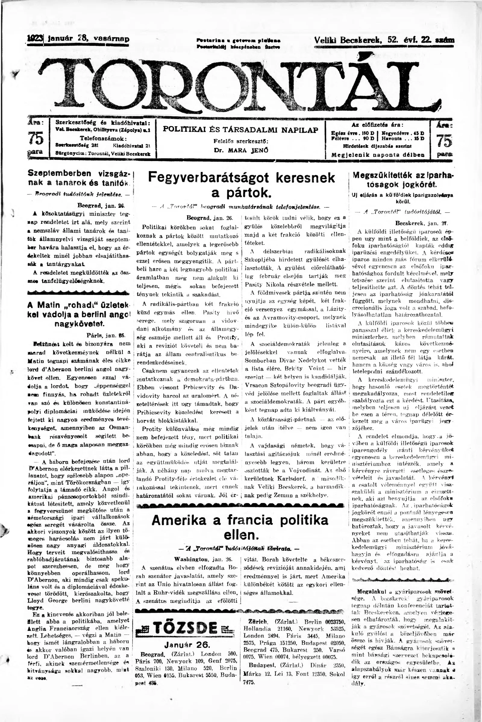 Torontál, 52. évf. 1923. január 28. 22. sz.