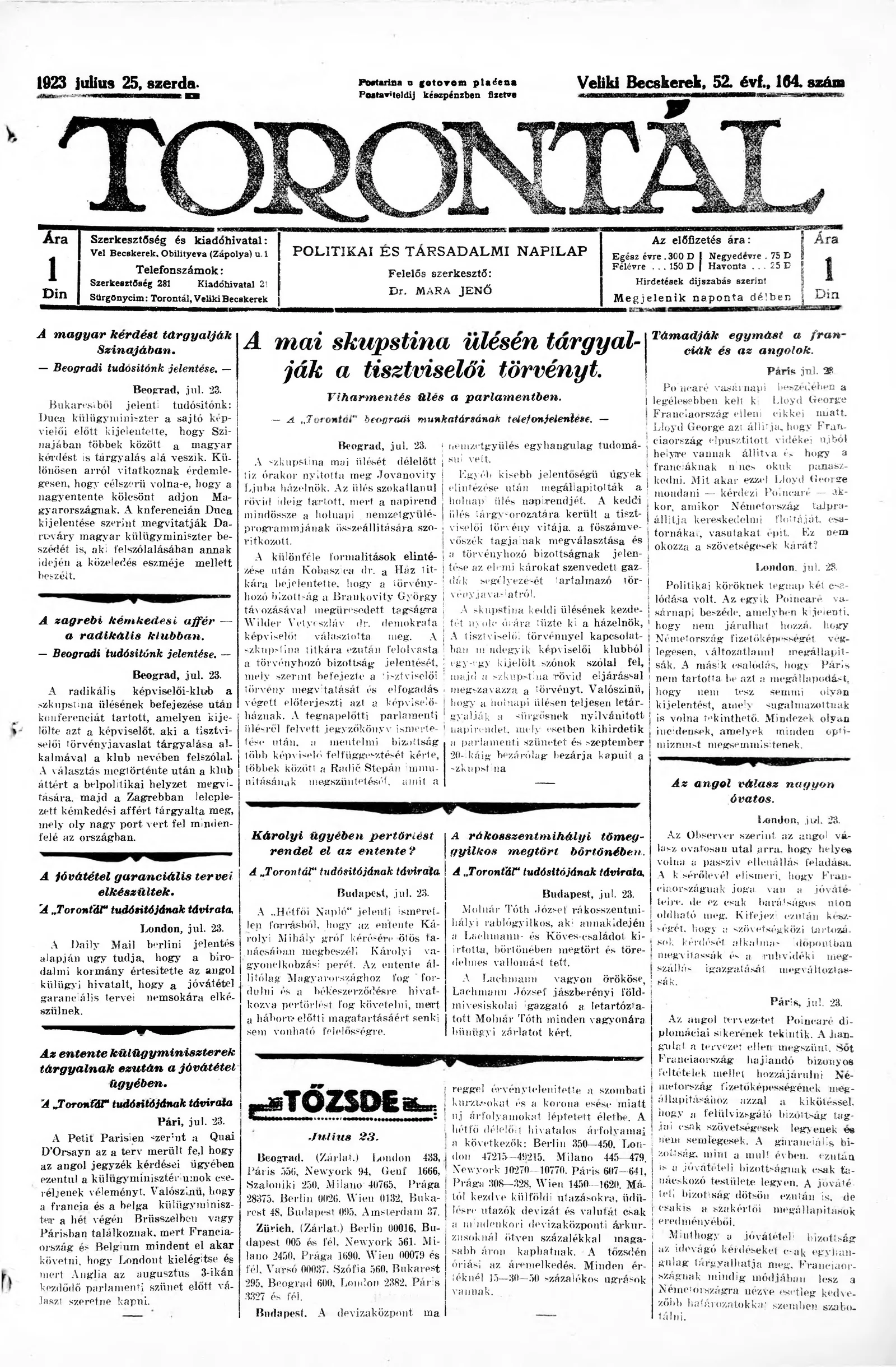 Torontál, 52. évf. 1923. július 25. 164. sz.