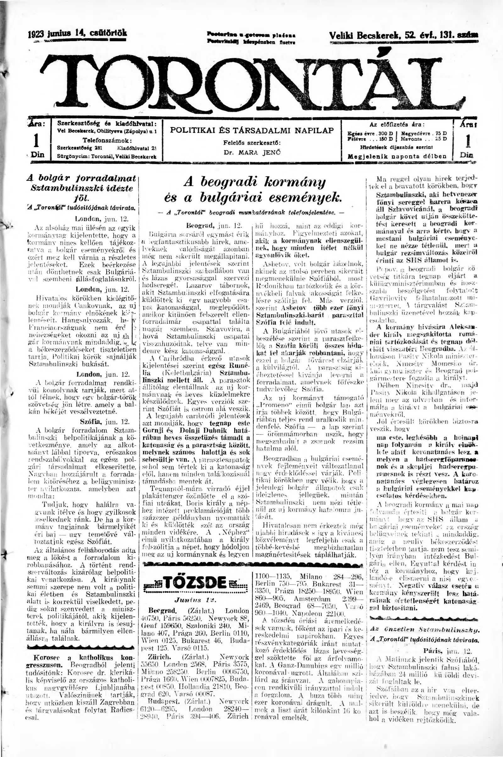 Torontál, 52. évf. 1923. június 14. 131. sz.