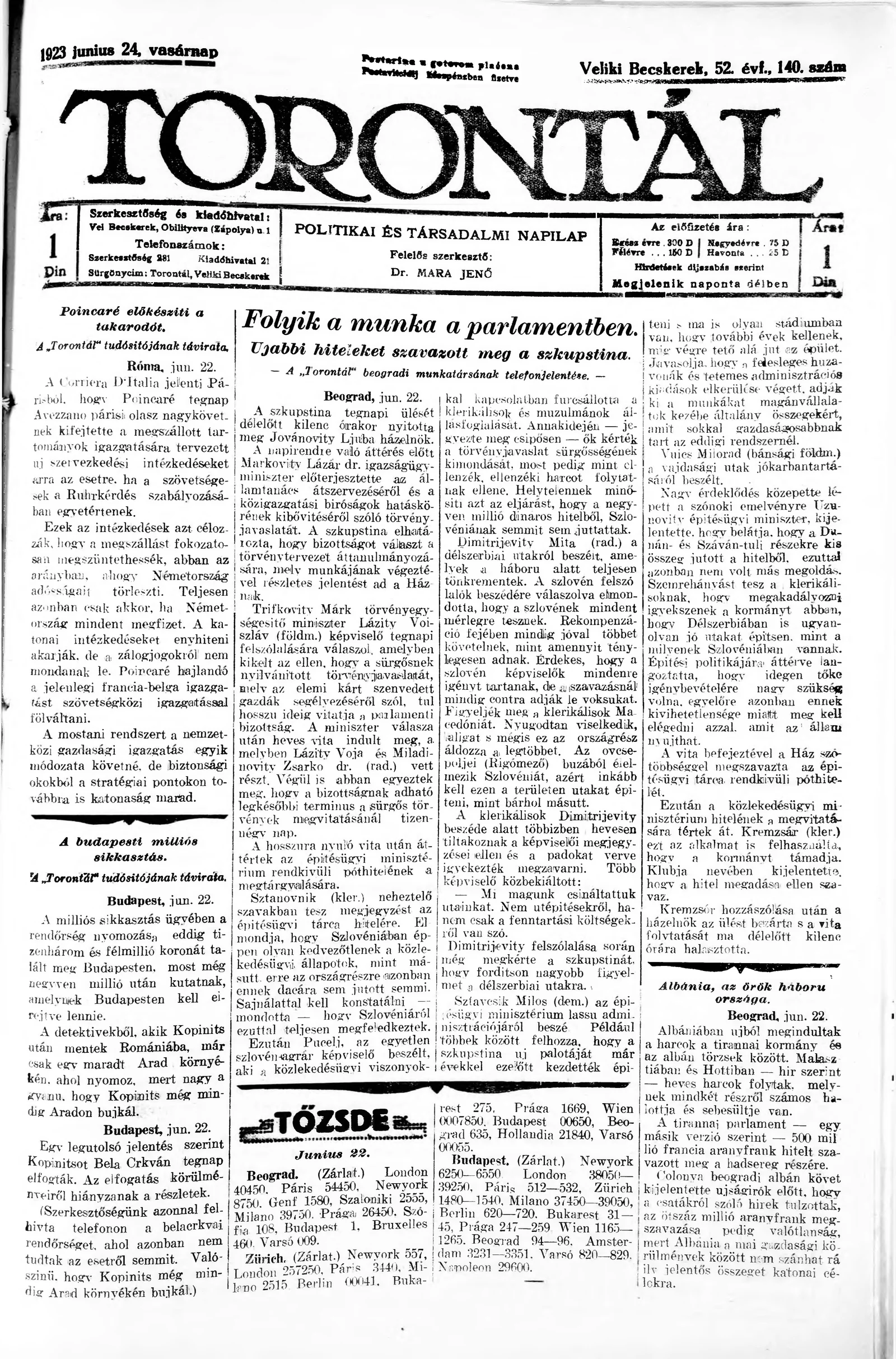 Torontál, 52. évf. 1923. június 24. 140. sz.