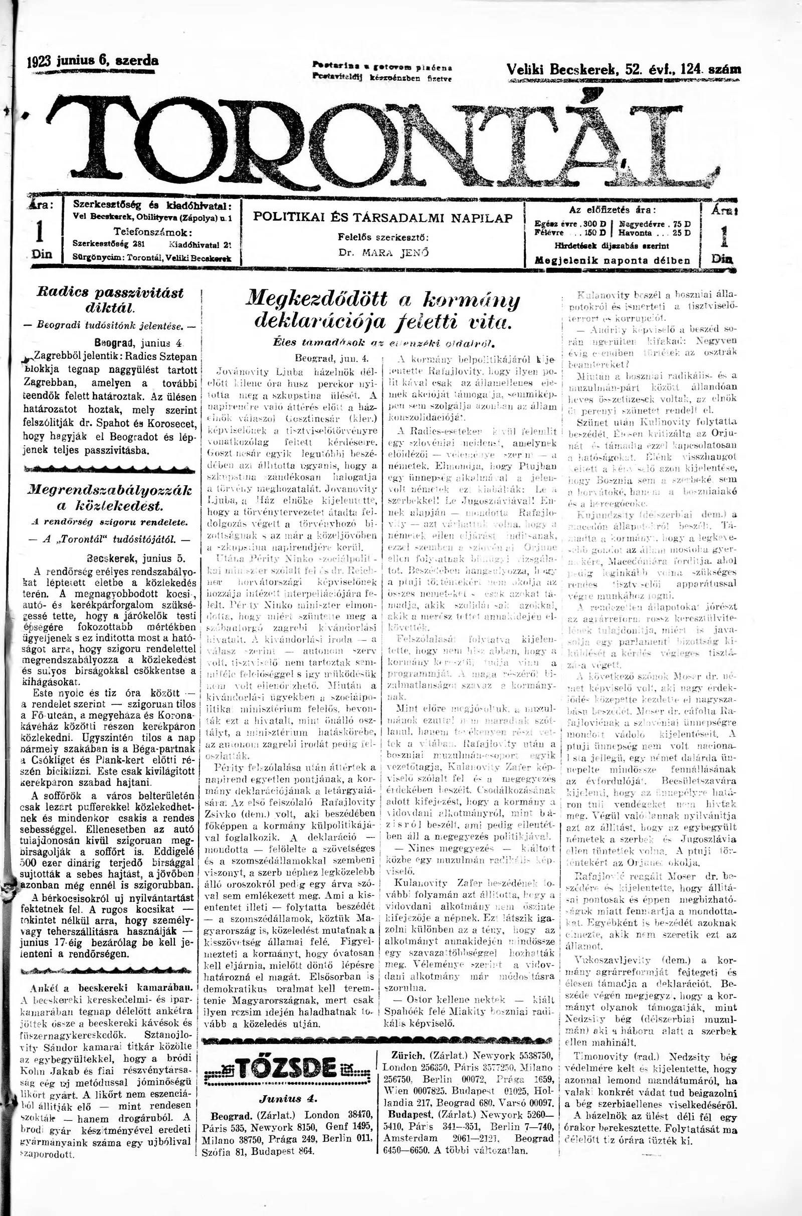 Torontál, 52. évf. 1923. június 6. 124. sz.