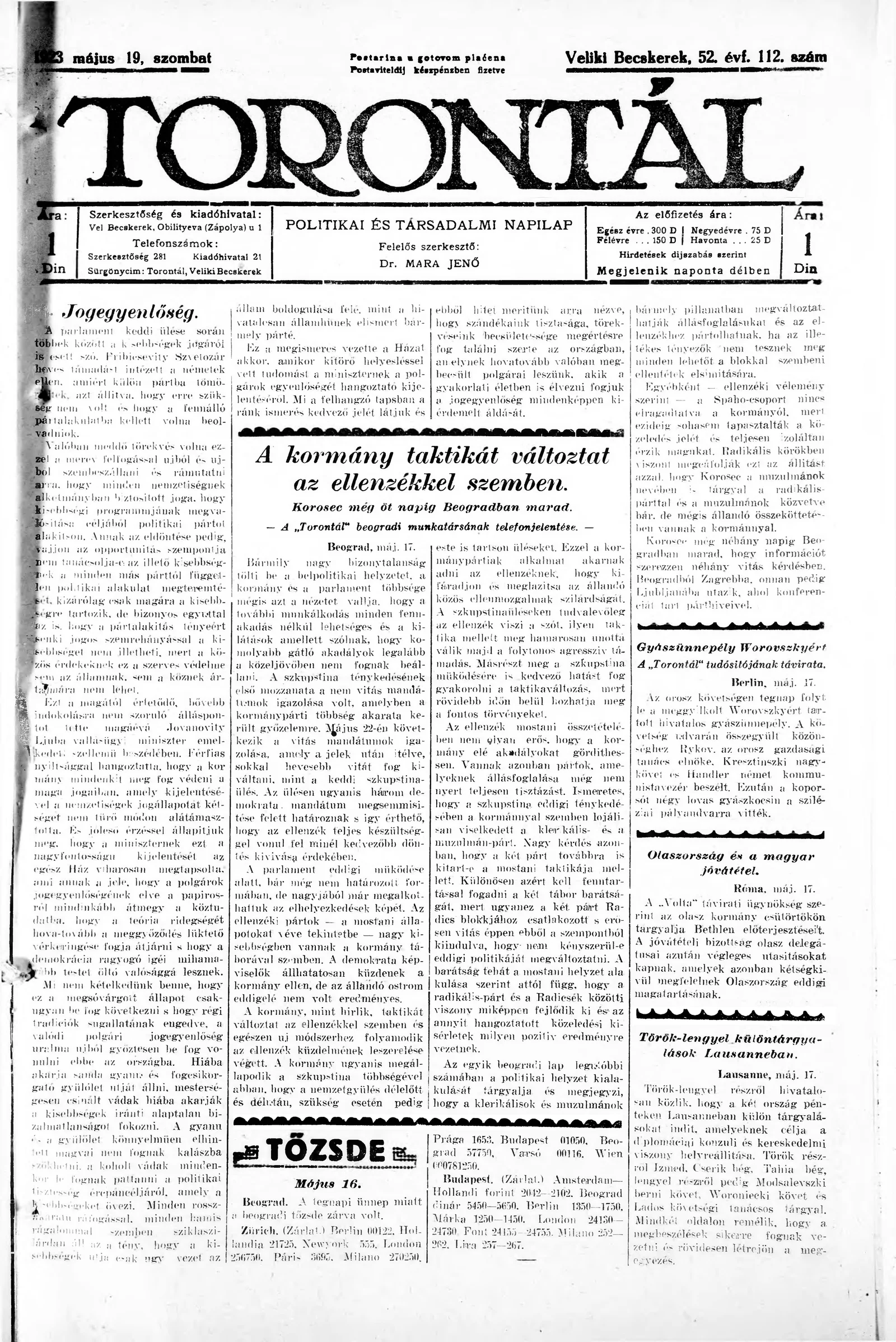 Torontál, 52. évf. 1923. május 19. 112. sz.