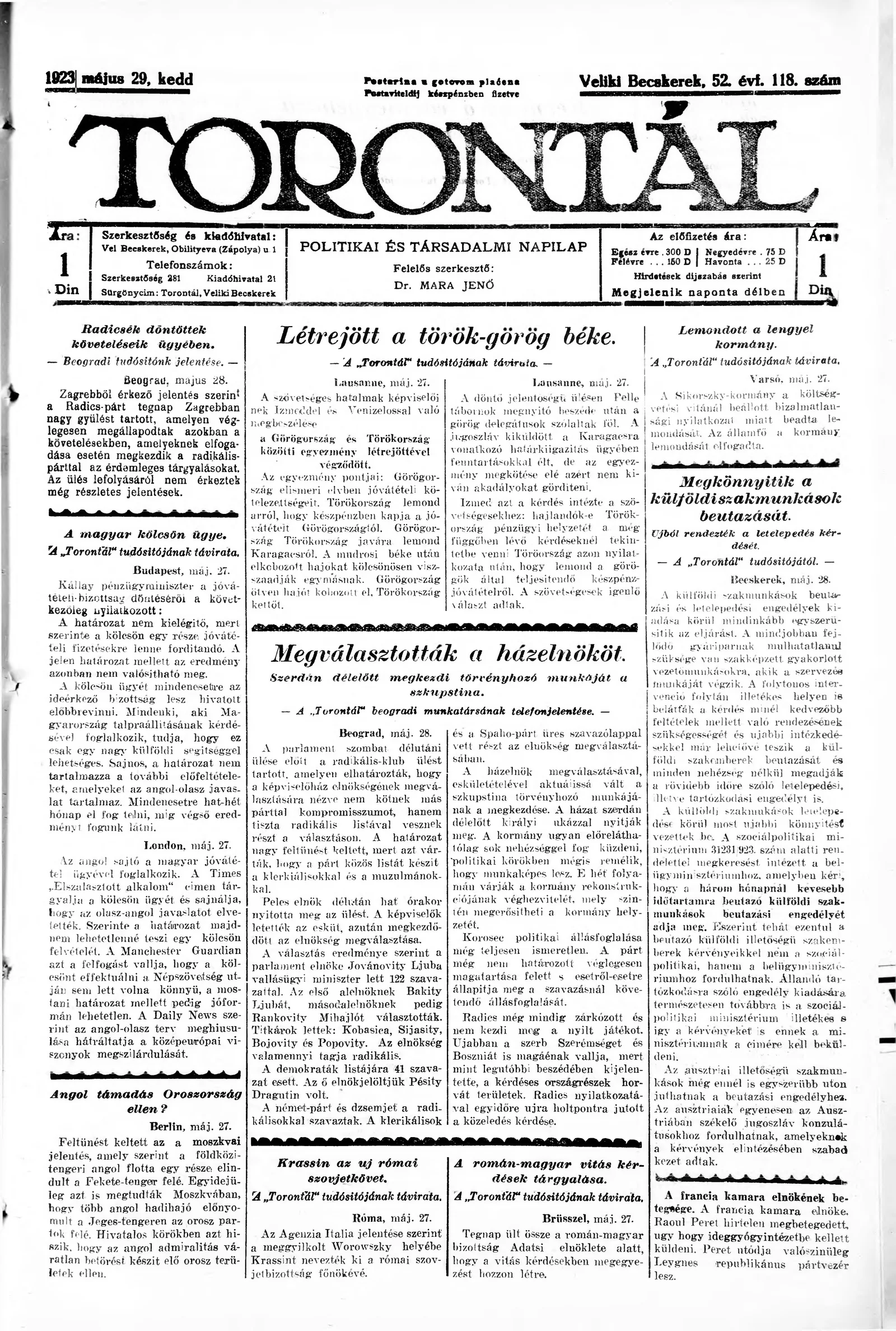 Torontál, 52. évf. 1923. május 29. 118. sz.