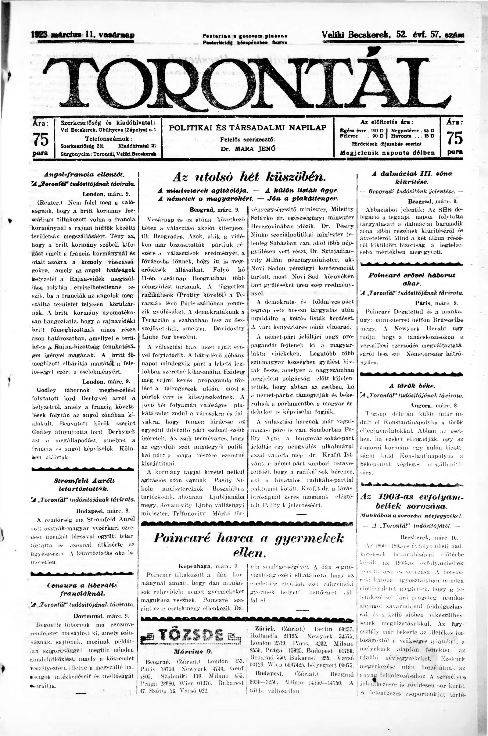 Torontál, 52. évf. 1923. március 11. 57. sz.