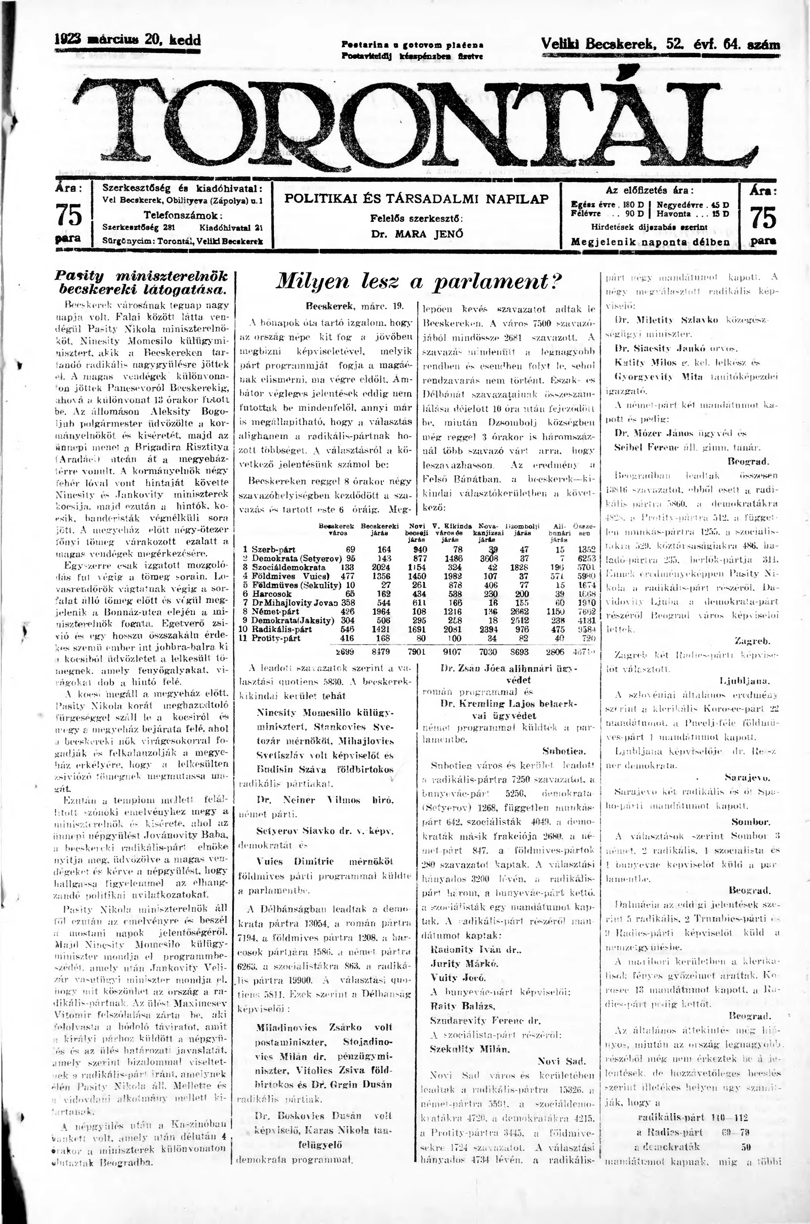 Torontál, 52. évf. 1923. március 20. 64. sz.