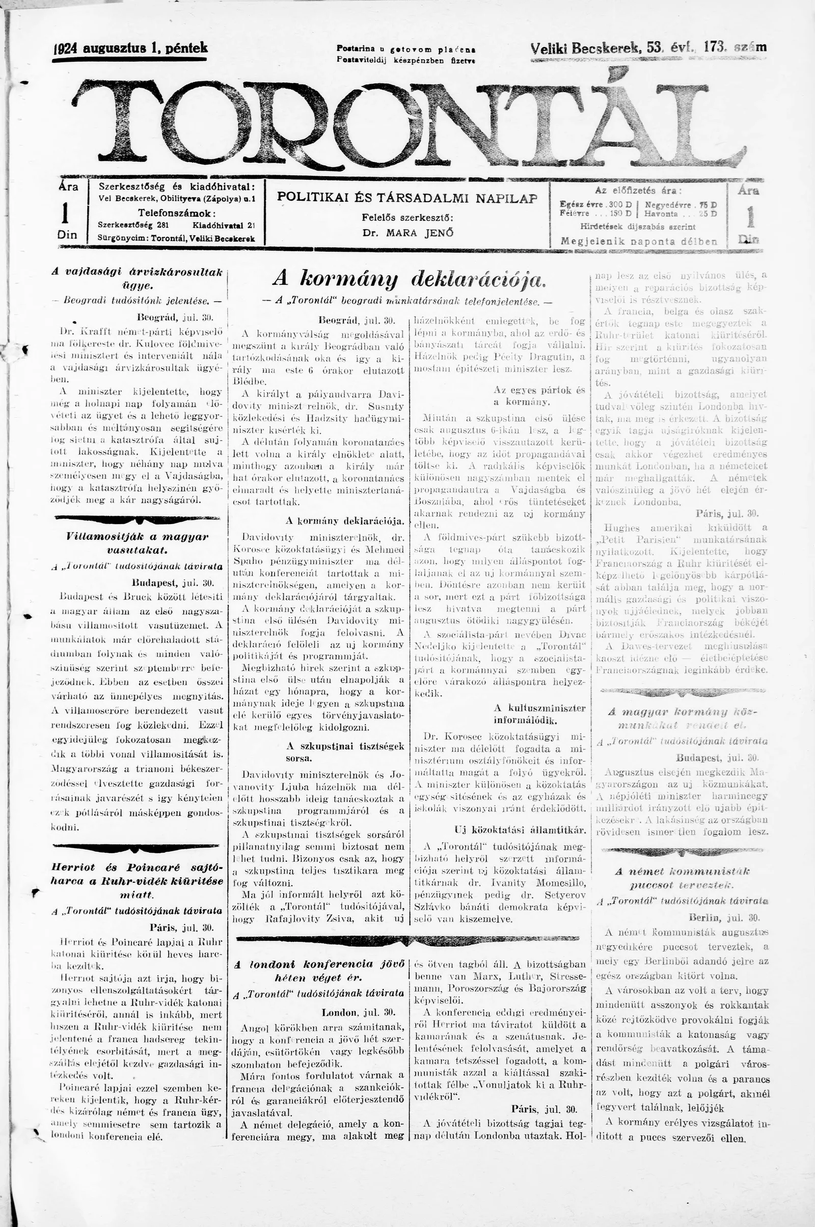 Torontál, 53. évf. 1924. augusztus 1. 173. sz.