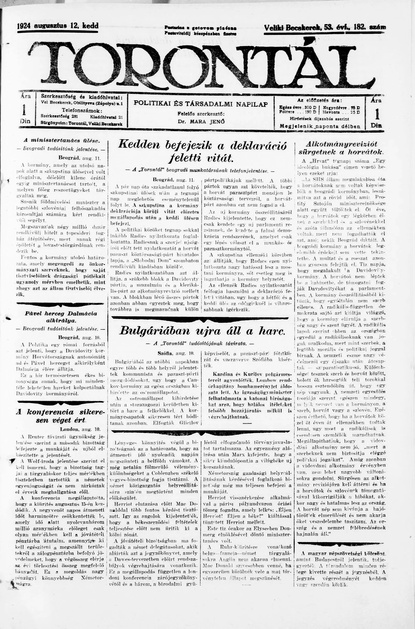 Torontál, 53. évf. 1924. augusztus 12. 182. sz.
