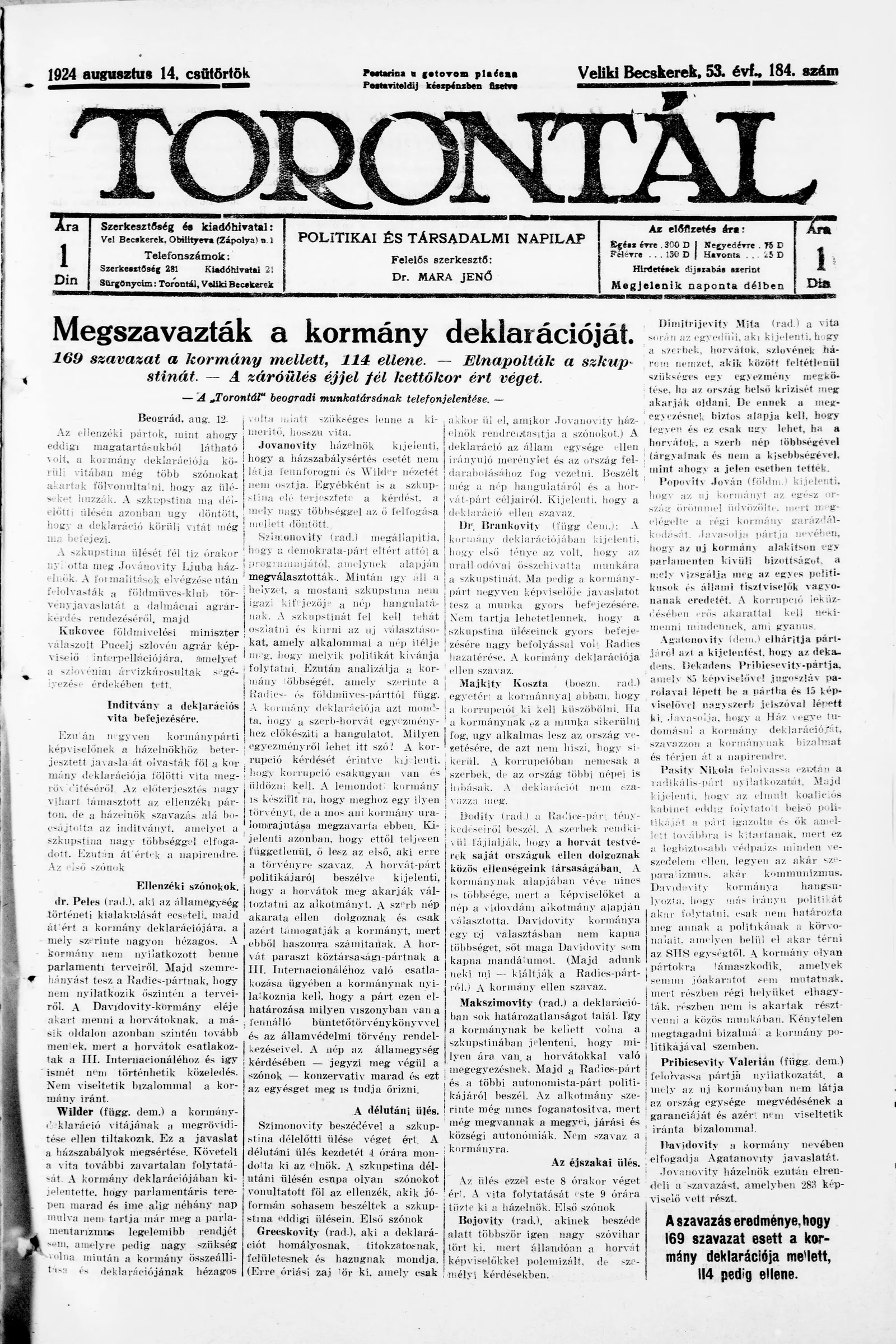 Torontál, 53. évf. 1924. augusztus 14. 184. sz.