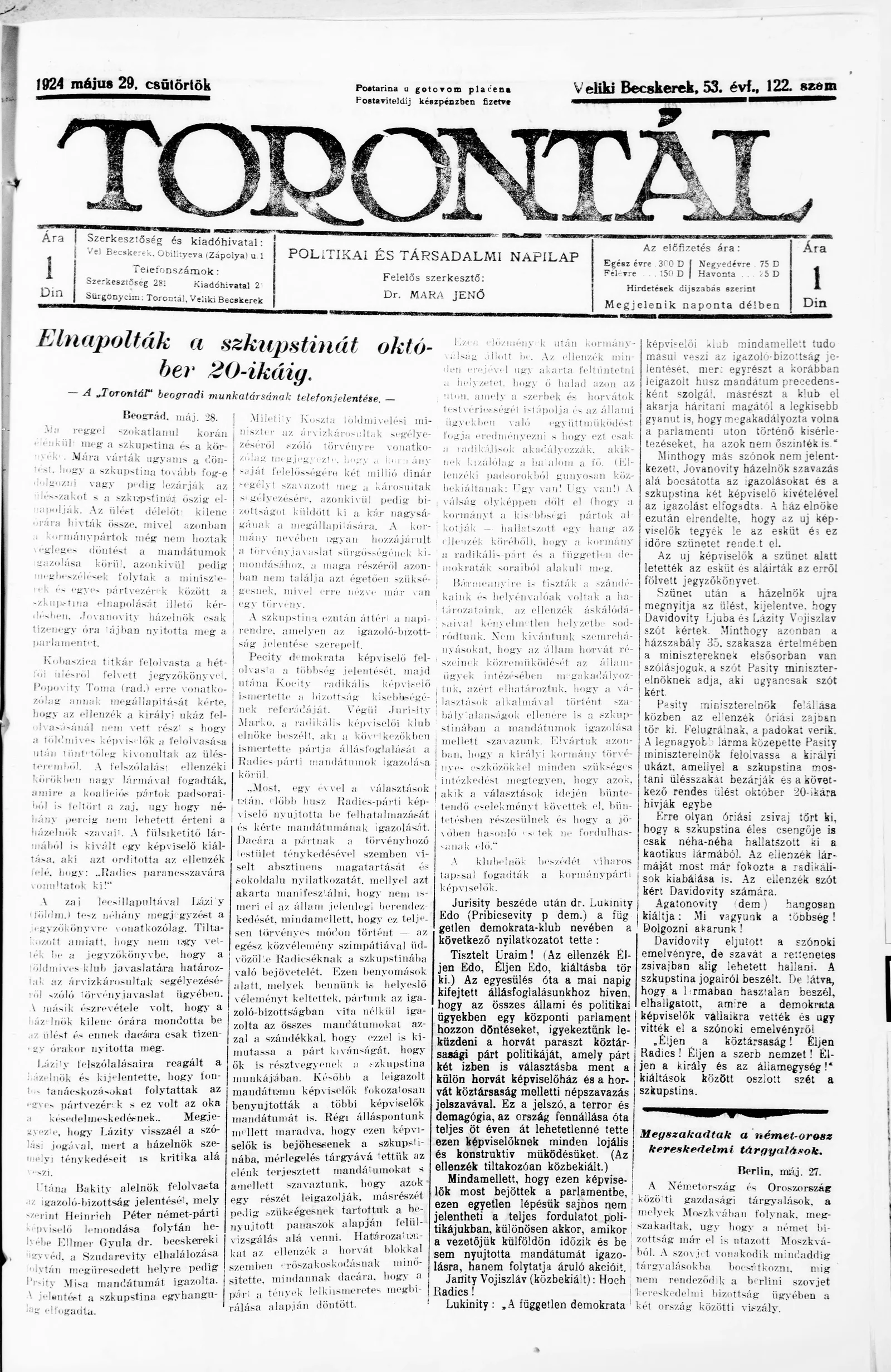Torontál, 53. évf. 1924. május 29. 122. sz.
