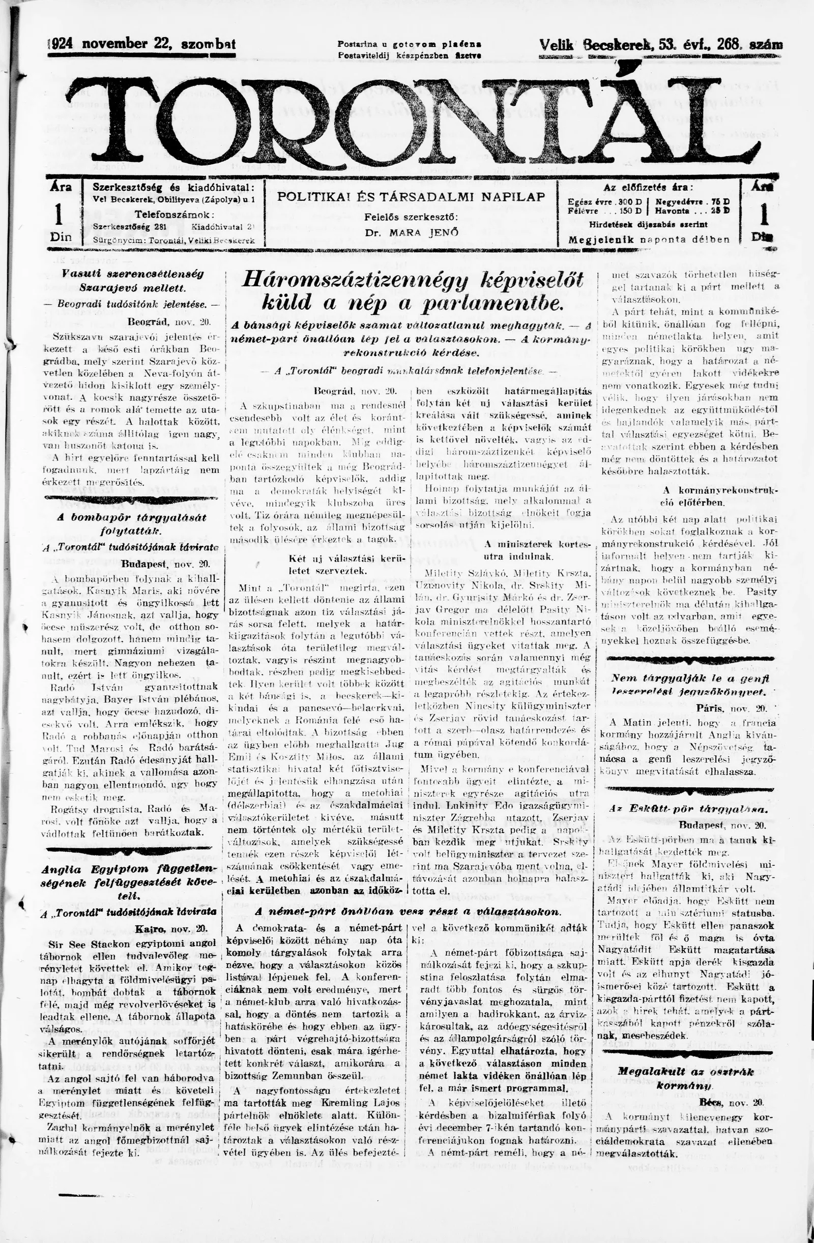 Torontál, 53. évf. 1924. november 22. 268. sz.